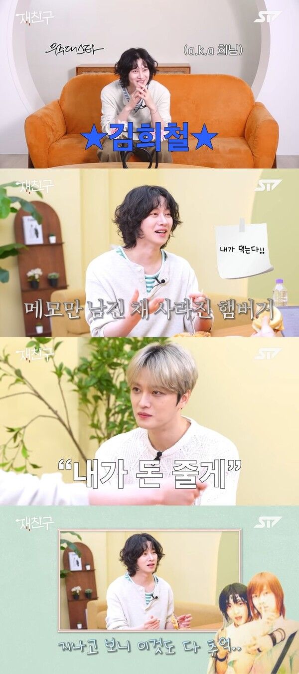 김희철은 돈이 없던 연습생 시절 열심히 돈을 모아 햄버거를 사서 뒀다고 이야기를 시작했다. 하지만 귀가해 보니 '내가 먹는다'는 메모 한 장만 남긴 채 사라져 버렸다고 말했다. 알고 보니 범인은 김재중이라고 털어놨다.