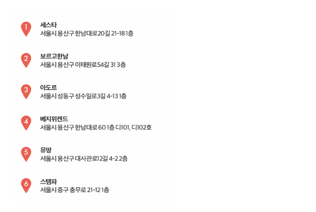 활기찬 분위기의 미식 경험을 원한다면 서울의 캐주얼 레스토랑을 탐험해 보면 어떨까? ‘뮤땅’, ‘베지위켄드’, ‘보르고한남’, ‘세스타’, ‘스탬파’, ‘아도르’에서는 유럽의 맛을 위트 있게 해석한 창의적인 시그너처 요리를 맛볼 수 있다. ‘발렁스’, ‘소나’, ‘소코’, ‘아떼’, ‘장생건강원’, ‘재인’도 놓치지 말자. 우수한 유럽산 식재료로 만든 페이스트리, 디저트, 칵테일을 즐길 수 있다.
