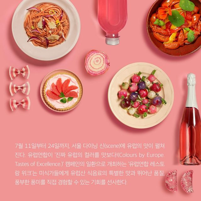 」미식 탐험가부터 새로운 것에 끌리는 호기심 많은 사람 등 누구에게나 유럽연합 레스토랑 위크는 유럽의 식음료 문화를 가까이에서 즐길 수 있는 경험을 선사한다. 한번 경험하면 계속 찾게 되는 유럽산 식재료, 그에 담긴 장인 정신, 깊은 풍미와 정통성을 함께 즐겨보자. 벌써부터 설렘을 선사하는 유럽연합 레스토랑 위크. 7월, 진짜 유럽의 맛을 만나볼 시간이다.