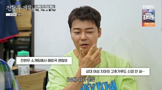 평소 맵부심을 자랑하던 전현무는 “오늘은 순정이다. 여기는 소고기국밥의 본질을 보여준다”며 양념장과 땡초, 후추를 거부했다. 이어 곽튜브에게 “소개팅 때 이런 국밥 먹을 수 있느냐”고 물었다. 곽튜브는 “안 된다. 소개팅 첫인상에 늘 실패했다. 고급스러운 레스토랑 감성으로 가야 한다”고 답했다.