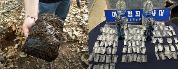 이어 다른 장소에서도 나무 밑을 파내자 검은 비닐로 꽁꽁 싸인 필로폰 500g과 케타민 130g이 발견됐다. 필로폰 500g은 1만7000명이 동시에 투약할 수 있는 양이라고 한다.