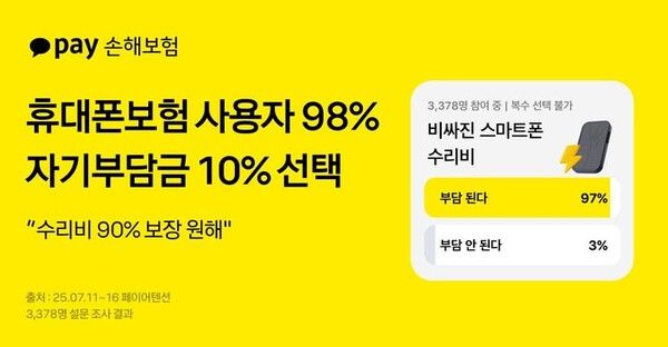 이러한 사용자 인식은 휴대폰보험 가입 패턴에도 볼 수 있다. 지난달 기준 카카오페이손해보험 휴대폰보험 가입자 중 98%는 '자기부담금 10%' 옵션을 선택해 가입했다.