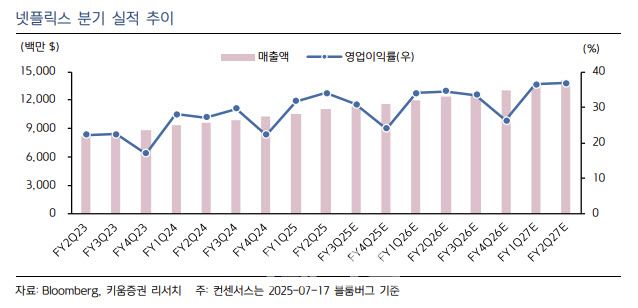 이지수 한국투자증권 연구원은 “‘오징어게임 시즌 3’(조회수 1억2000만회), 영화 ‘벼랑 끝에 서서’(1억회), 애니메이션 ‘케이팝 데몬 헌터스’(8000만회)를 포함한 강력한 콘텐츠 라인업과 가격 인상, 광고 매출 증가 등이 어우러진 결과”라고 분석했다.