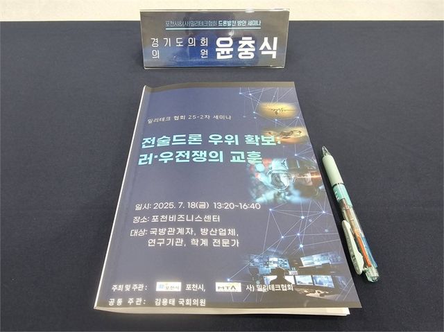 (경기=뉴스영 공경진 기자) 경기도의회 윤충식 의원(국힘, 포천1)이, 지난 18일 포천비즈니스센터에서 열린 ‘전술드론 우위 확보 방안: 러-우 전쟁의 교훈’ 세미나에 참석해 드론산업 발전과 전략산업 육성의 필요성을 강조했다.