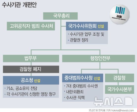 앞서 더불어민주당은 검찰의 수사권은 행정안전부 산하 중수청에, 기소권은 법무부 산하에 신설되는 공소청에 이관하는 내용의 법안을 발의했다. 검찰청을 없애고 수사권과 기소권을 완전히 분리하는 구상이다.