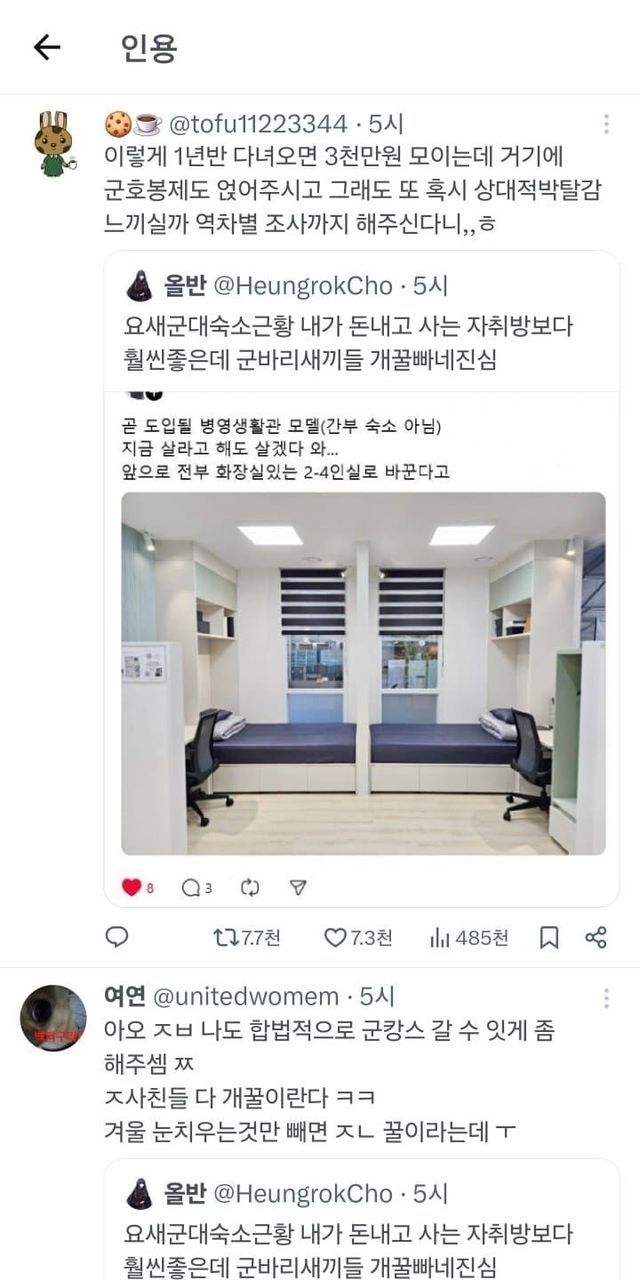 남자들 군대 복지해주는 거 차별이라며