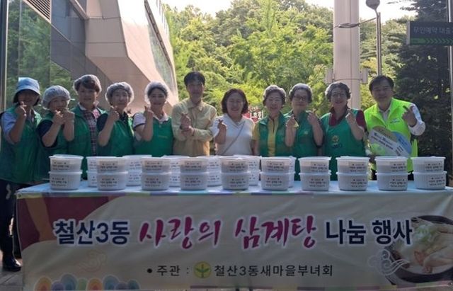 [와이뉴스] 광명시 철산3동 새마을부녀회는 지난 18일 초복을 맞아 철산3동 행정복지센터 앞마당에서 직접 만든 삼계탕을 폭염 취약계층 40가구에 전달했다.