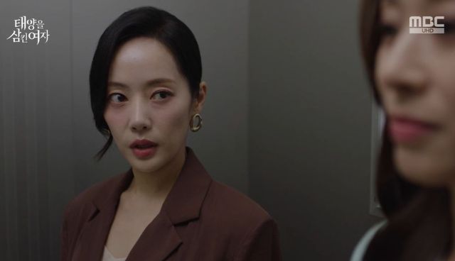 21일 방송된 MBC 일일드라마 ‘태양을 삼킨 여자’에는 정루시아, 백설희(장신영 분)를 경계하는 민경채(윤아정)의 모습이 그려졌다.
