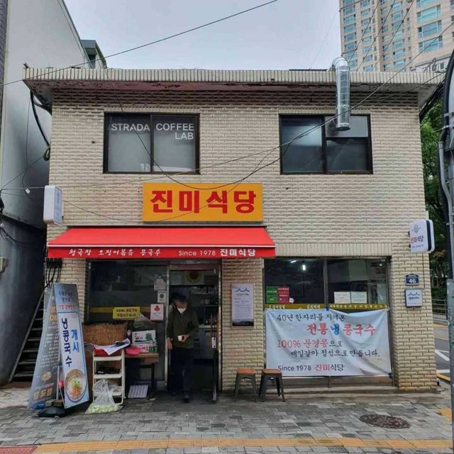 답십리 현대시장 인근에 자리한 한식 전문점. 코다리 백반, 제육덮밥, 잔치 국수 등을 판매하는데 여름 한정으로 선보이는 콩국수가 일품으로 소문이 났다. 경북 예천산 서리태 콩을 직접 공수해 전통 방식으로 갈아 인위적인 첨가물 없이 진한 콩국물을 만든다. 많은 손님들이 식사 후 콩국을 따로 사갈 정도. 시원한 감칠맛의 김치와 부추무침도 콩국수 맛을 살리는데 도움을 준다.
