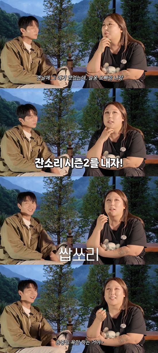 풍자가 "옛날에 그 얘기 했었는데, 슬옹 오빠랑 나랑 '잔소리' 시즌2를 내자. (제목은) '쌉소리', '개소리'로 온종일 욕만 하는 거다. 남녀가 걱정이 돼서 잔소리를 하는 게 아니라 화가 나서 욕을 하는 (내용)이다"라고 밝혔다. 이에 임슬옹은 "유통은 안 되겠다"라고 말해 웃음을 자아냈다.