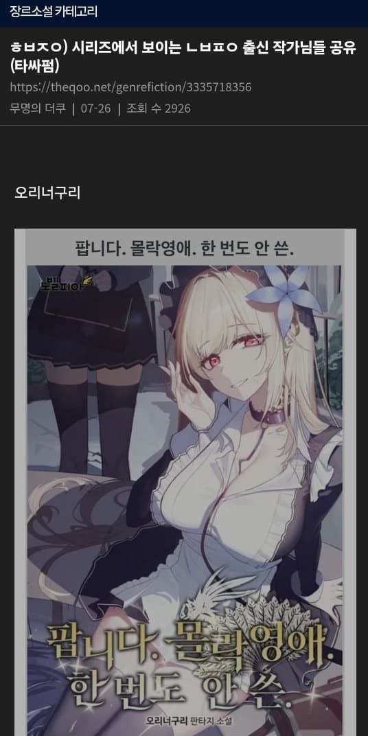 예전에 한 번 여초에서 웹소설계 살생부 돈 적 있는데