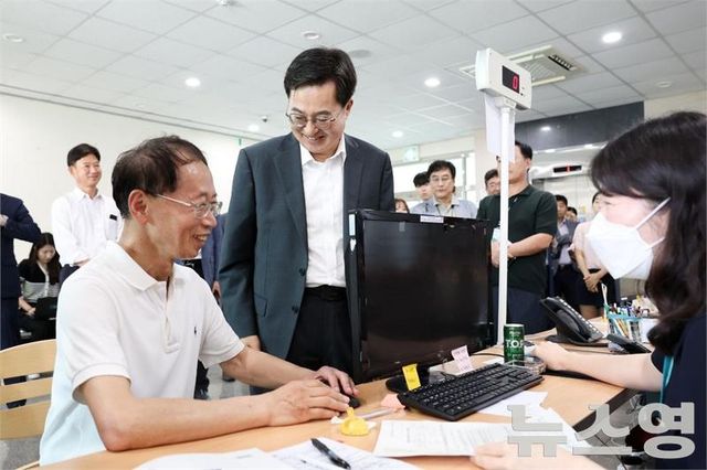 (뉴스영 이현정 기자) 김동연 경기도지사가 21일 ‘민생회복 소비쿠폰’ 신청 첫날 수원시 원천동 행정복지센터를 찾아 현장점검에 나섰다.