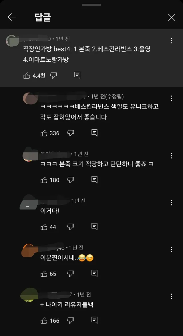 직장인 데일리백 best 4 에 달린 댓글