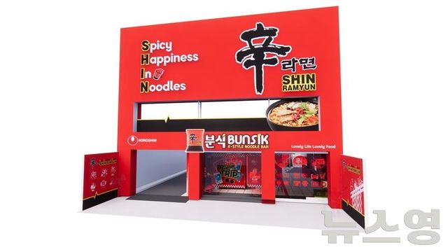 농심 'Spicy Happiness In Noodles' 슬로건 적용 신라면 분식 렌더링 이미지/사진=농심