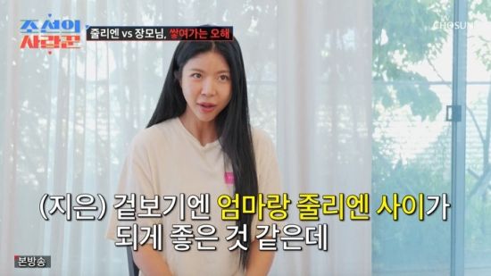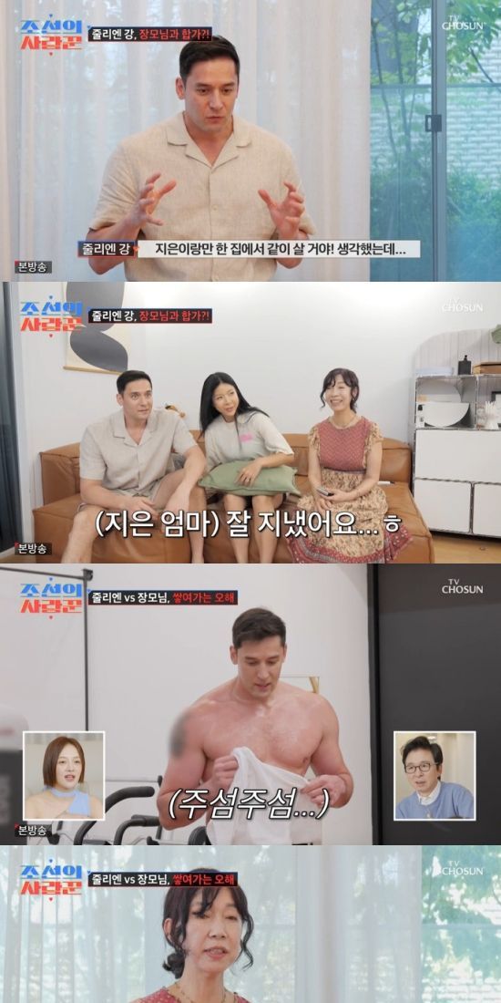 줄리엔 강은 "처음에 결혼했을 땐 그냥 지은이랑 결혼하니까 '앞으로는 지은이랑만 같이 살 거야' 했다. 장모님도 같이 (거주) 해야 된다는 건 생각 못 했다. 그래도 우린 거리 있어서 괜찮다"라며 털어놨다.