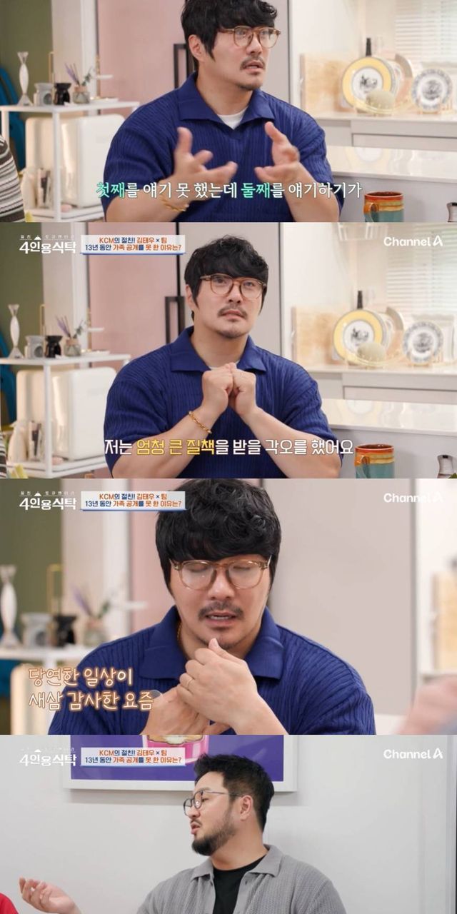 김태우는 "이 정도로 힘든 줄 몰랐다"라고 답했다. KCM은 "거짓말처럼 잘 해결이 됐다. 빚 청산하고 혼인신고를 하고 둘째가 생기고 아내랑 펑펑 울었다. (사람들에게) 첫째를 얘기를 못했는데 둘째를 얘기하기가 겁도 나더라. '결혼식 하기 전에 사정을 털어놓자' 싶어서 엄청 질책을 받을 각오를 했다. 제 개인사긴하지만 13년간 말을 안 한 게 비겁하지 않았냐"라고 말했다.