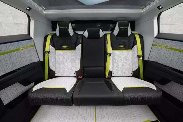 실내는 기존 만소리 튜닝 사이버트럭과 동일하다. 블랙과 화이트, 그리고 형광 옐로 계열의 가죽이 혼합된 독특한 컬러 조합이 적용돼 있다.