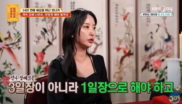 뉴시스 보도에 따르면, 그는 지난 21일 방송한 KBS Joy 예능 프로그램 '무엇이든 물어보살'에서 14년 전에 친언니가 극단적 선택을 하게 된 사연을 설명했다.
