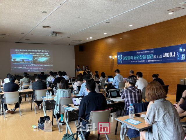 22일 오후 서울 송파구 올림픽공원 내 소마미술관에서 열린 한국대중음악공연산업협회(음공협) 주최 ‘대중음악 공연산업 발전을 위한 세미나’ 참석자들은 K팝 공연장 인프라 확충을 대중음악 공연산업계 발전을 위한 최우선 과제로 꼽으며 이 같이 입을 모았다.