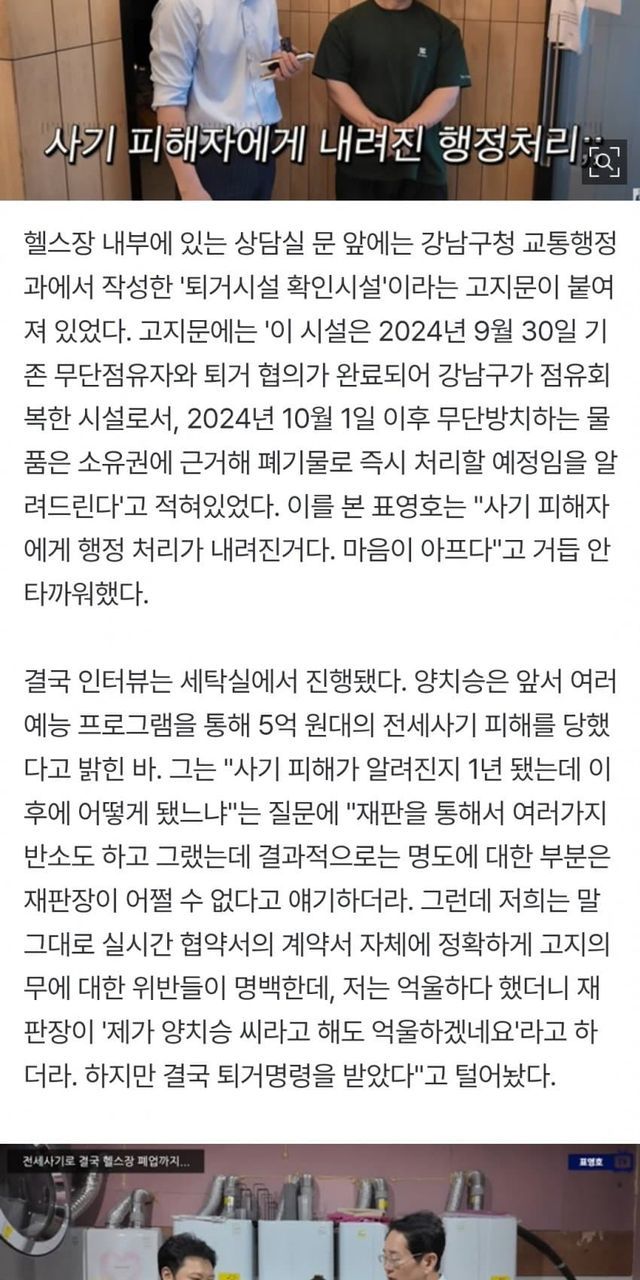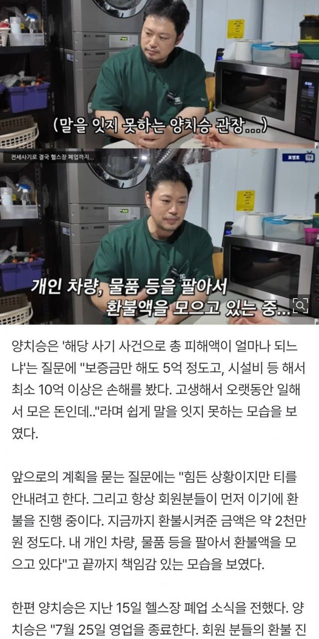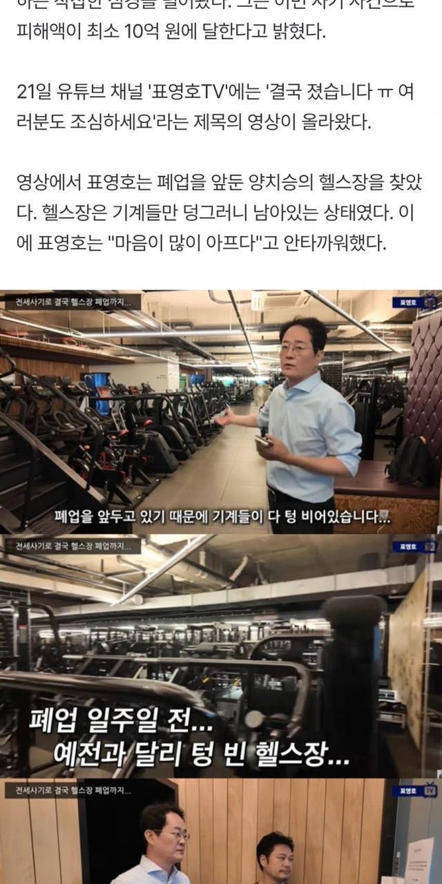 '전세사기' 양치승, 결국 헬스장 폐업 "10억 날렸다..