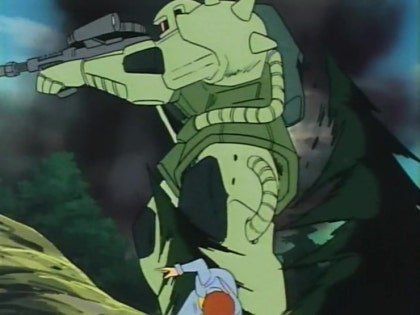 정찰중이던 지온군에게 포착되고 미행당한다