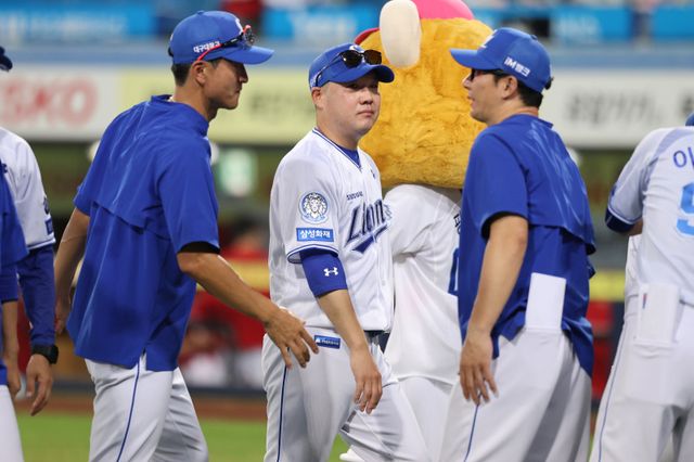 이날 삼성은 선발 원태인이 5이닝 9피안타 4탈삼진 4실점(3자책점)했다. 6회부터 가동된 불펜은 김재윤(1이닝 무실점·승) 김태훈(1이닝 무실점·홀드) 이승현(1이닝 무실점·홀드) 이호성(1이닝 1실점 비자책·세이브)이 4이닝 1실점으로 틀어막았다. 타선에선 4번 디아즈가 5타수 2안타 1득점, 5번 강민호가 5타수 3안타 4타점 맹타를 휘둘렀다. 4-4로 맞선 6회 2사 만루에서 터진 강민호의 2타점 적시타가 결승타였다.