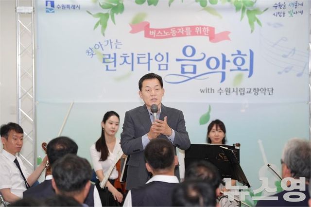 (뉴스영 이현정 기자) 이재준 수원시장이 22일 수원동부버스공영차고지에서 열린 ‘찾아가는 런치타임 음악회’를 찾아 버스 운전 노동자들의 노고를 격려했다.
