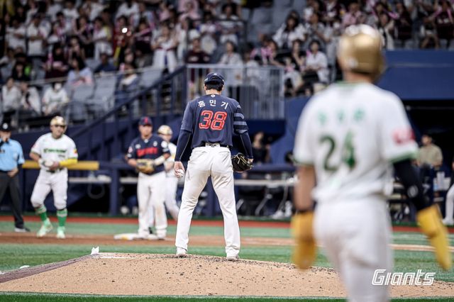 김태형 감독은 이 상황에서 홍민기를 투입했다. 그는 최고 155㎞/h 강속구를 뿌리는 좌완 투수로 주목받았다. 2020 1라운더였지만 그동안 1군에서 자리 잡지 못했던 선수. 하지만 대체 선발로 나선 6월 18일 한화 이글스전에서 4이닝 1실점을 기록하며 도약 발판을 만들었고, 이후 스윙맨 역할을 잘 수행하다가 후반기 필승조에 진입했다.
