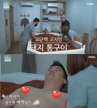편안하게 마사지를 즐기는 이장우의 모습을 흐뭇하게 지켜보던 뱀뱀은 돌연 홈쇼핑 쇼호스트에 빙의해 "자, 오늘 소개해 드릴 메뉴는요. 장우 통구이입니다~"라고 해 웃음을 자아낸다.