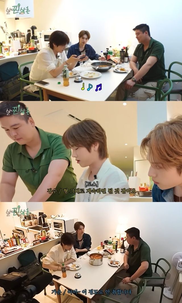 가온은 "저희 팀에 마른 친구가 3명 있다. 투어나 공연을 뛰고 오면 2~3kg씩 빠진다"며 "살을 안 찌우면 너무 지치고 힘드니까 활동기 전에 살을 찌우는 게 관리다"라고 남다른 고충을 드러냈다.