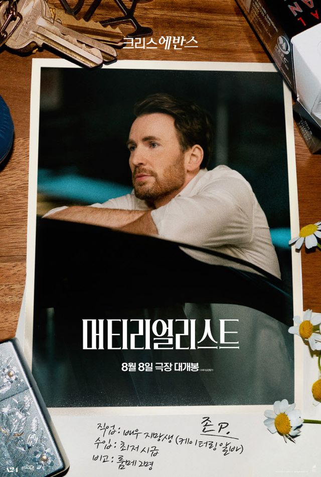 ‘머티리얼리스트’가 루시(다코타 존슨 분), 존(크리스 에반스 분), 그리고 해리(페드로 파스칼 분)의 캐릭터 포스터 3종을 공개했다. 공개된 캐릭터 포스터는 캐릭터들을 상징하는 물건들과 캐릭터의 사진으로 구성되었으며 모던하고 감각적인 비주얼로 눈길을 끈다.