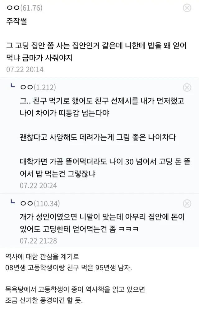 목욕탕에서 고딩에게 접근해서 친구 먹음