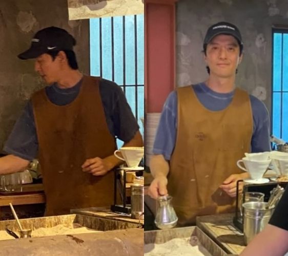 공개된 사진에는 커피를 제조하는 이동건, 손님의 카메라와 아이콘택트를 하고 있는 이동건의 모습이 담겨 있어 눈길을 끈다. 검은색 볼캡을 눌러쓴 이동건은 진한 파란색 티셔츠 위에 늘 착용하는 갈색 앞치마를 걸친 편안한 옷차림이다.