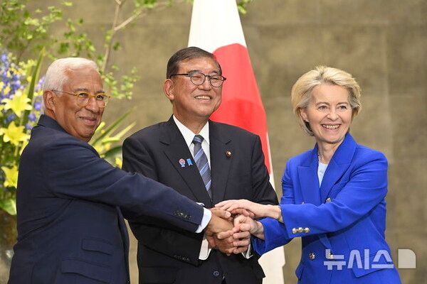 뉴시스 보도에 따르면, 니혼게이자이신문(닛케이), 아사히신문 등에 따르면 방일한 우르줄라 폰데어라이엔 집행위원장, 안토니우 코스타 정상회의 상임의장은 이날 도쿄 총리 관저에서 이시바 시게루(石破茂) 총리와 회담하고 이같이 합의했다.