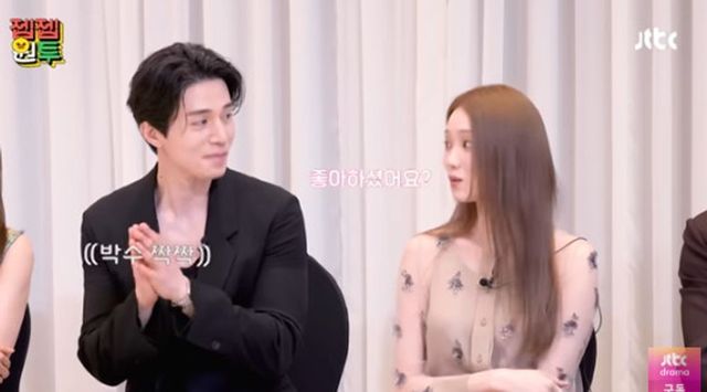 영상에선 드라마 ‘착한 사나이’ 출연진이 촬영 비하인드를 공개하는 모습이 담겼다. 실곤(천호진 분)이 창수(이문식 분)와 태훈(박훈 분)을 화해시키는 장면이 소환되자 이동욱은 “이문식 선배도 되게 오랜만이 얼굴 뵙는 거라 너무 반가웠다”라고 반겼고 박훈은 “몸 관리를 너무 잘하셨다”라고, 이성경은 “그대로시다”라고 거들었다.