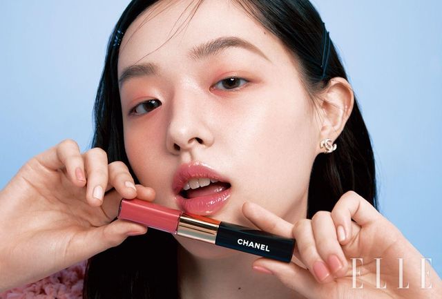 울트라 르 뗑 쿠션을 피부에 얇고 가볍게 밀착시켜 편하고도 결점 없는 베이스를 연출한다. 옹브르 에쌍씨엘, 228 로즈 샤르넬을 눈꺼풀에 넓게 펴 바르고, 눈 바로 아래부터 양볼, 콧등까지 부드럽게 연결해 터치. 은은한 베이지 핑크 컬러의 르 루쥬 듀오, 174 엔들리스 핑크를 사용해 글레이즈 도넛 같은 ‘오동통’ 윤기를 입술에 표현한다. 사용 제품은 모두 Chanel.