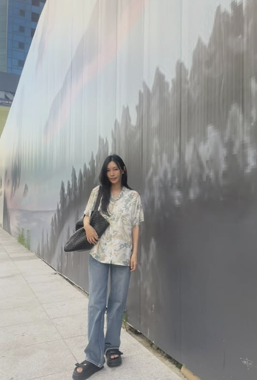 사진 속 김소연은 싱그러운 자연을 배경으로 여유로운 포즈를 취하며 도심 속 힐링 분위기를 자아냈다. 그녀는 플로럴 패턴의 시원한 셔츠에 와이드 데님 팬츠를 매치하고, 블랙 슬리퍼와 볼드한 클러치백을 더해 실용적이면서도 스타일리시한 여름 패션을 완성했다. 긴 생머리와 자연스러운 미소가 어우러져 청량한 계절감이 더욱 돋보였다.