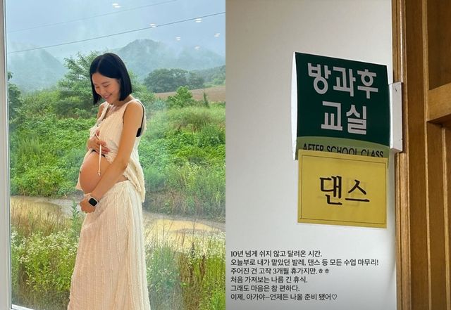 그는 "오늘부로 내가 맡았던 발레, 댄스 등 모든 수업 마무리! 주어진 건 고작 3개월 휴가지만"이라며 "처음 가져보는 나름 긴 휴식. 그래도 마음은 참 편하다"고 출산으로 인해 잠시 휴식기를 가지는 심경을 전했다.