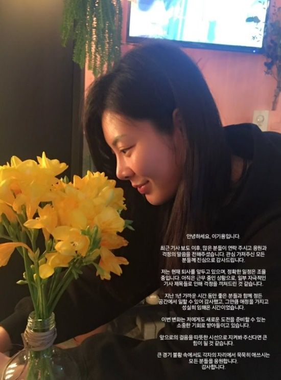 23일 이기용은 "최근 기사 보도 이후 많은 분들이 연락 주시고 응원과 걱정의 말씀을 전해주셨다. 관심 가져주신 모든 분들께 진심으로 감사드린다"고 인사했다.
