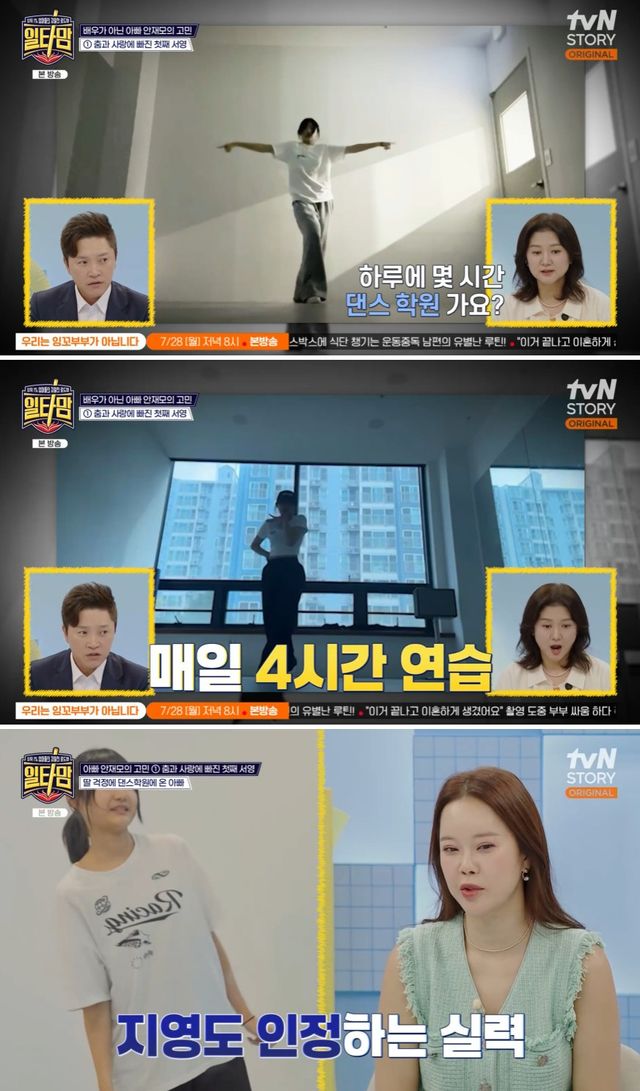안재모는 예체능을 택한 딸에 안재모는 수학, 영어, 국어 시험 점수를 물으며 걱정을 표했지만 현재 중학교 2학년인 서영은 일주일에 7일을 댄스 학원에 다니며 4시간 씩 춤 연습을 하는 등 꿈에 대한 열정을 보였다.