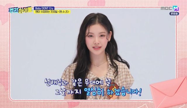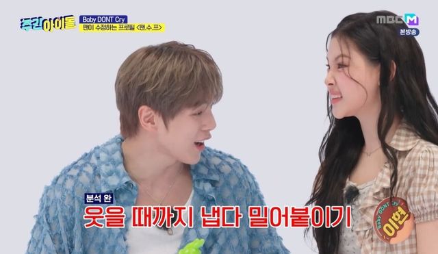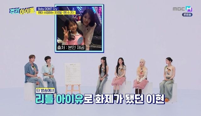 이날 베이비돈크라이(Baby DONT Cry)의 이현, 쿠미, 미아, 베니가 ‘주간아이돌’에 처음 등장했다. 리더 이현은 인생 첫 무대로 동생 유치원 찬조무대를 기억했다. 민혁은 “제가 기억하는 이현 씨 첫 무대는 동요 서바이벌이다. 제가 좋아하는 프로그램이었다”라고 떠올렸고, 형준은 “아이유 선배님과 무대하는 게 기억나는데, (아이유 선배님이) 함께 춤춘 꼬마 소녀가 이렇게 걸그룹으로 데뷔한 걸 아실까요?”라고 물었다.