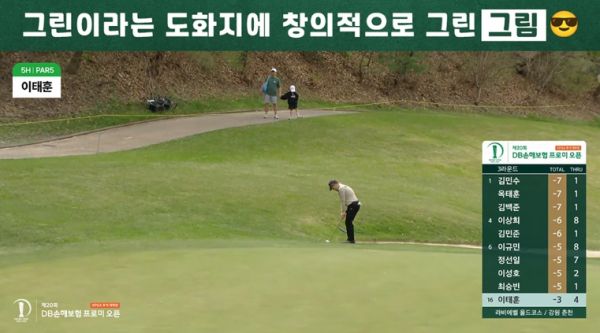 4월 19일 ‘제20회 DB손해보험 프로미 오픈’ 3라운드에 올라온 '창의적으로 그림을 그린 이태훈'이라는 제목의 영상이다. 해당 영상은 KPGA 공식 SNS에서 금일 기준 1,085,132회의 조회 수를 기록하고 있다.