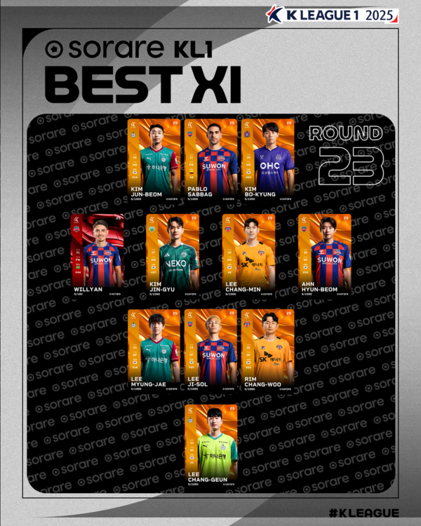 수원FC는 득점에 성공한 싸박, 윌리안, 안현범, 이지솔이 모두 K리그1 23라운드 베스트 11에 선정되며 최다 배출 팀으로 등극했다. 울산HD를 2-1로 꺾은 대전하나시티즌이 김준범, 이명재, 이창근을 올려 그 뒤를 이었다. 그밖에 이창민, 임창우(이상 제주SK), 김보경(FC안양), 김진규(전북현대) 등이 베스트 11의 영예를 안았다.