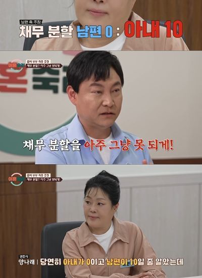 남편은 왜 채무 분할을 0:10으로 주장했던 걸까. 그는 조정 전 변호사 상담에서 캠프 신청 당시 이혼을 받아들이지 않던 아내의 태도에 불만이 쌓였다며 "재산 분할을 아주 그냥 못 되게. 네가 다 갚아라"라고 말했다.
