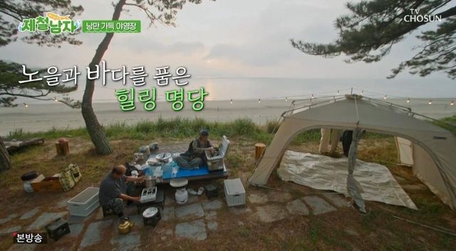 초록빛 나무들을 지나 도착한 야영장은 바다 풍경과 노을까지 더해져 낭만으로 가득했다. 이들의 폭풍 먹방과 함께 진솔한 이야기도 그려졌다.