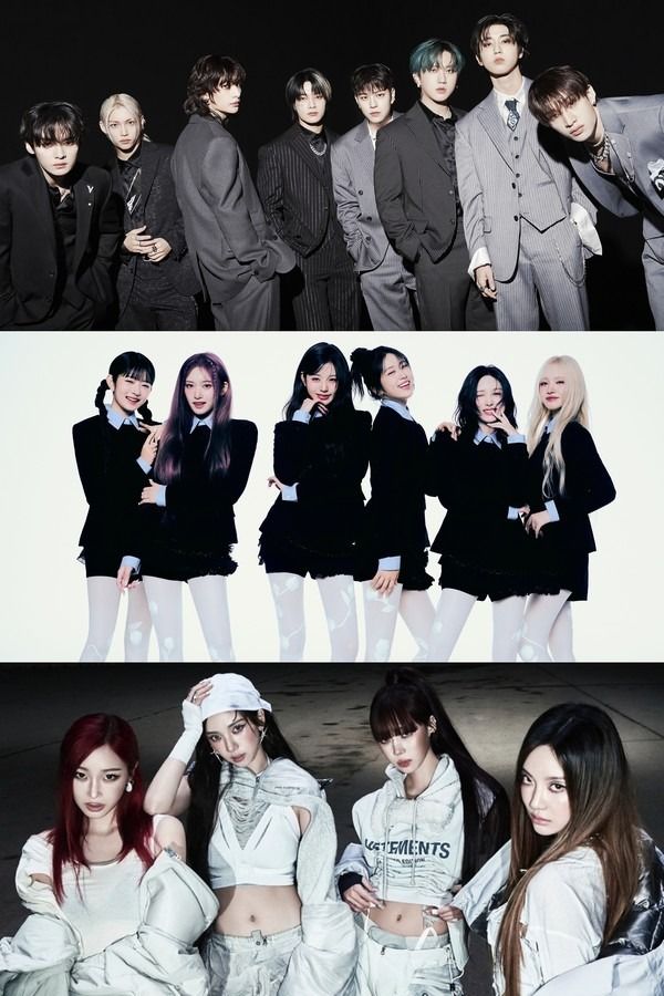 [사진 제공(팀명 가나다 순) = JYP엔터테인먼트(스트레이 키즈), 스타쉽엔터테인먼트(아이브), SM엔터테인먼트(에스파)]