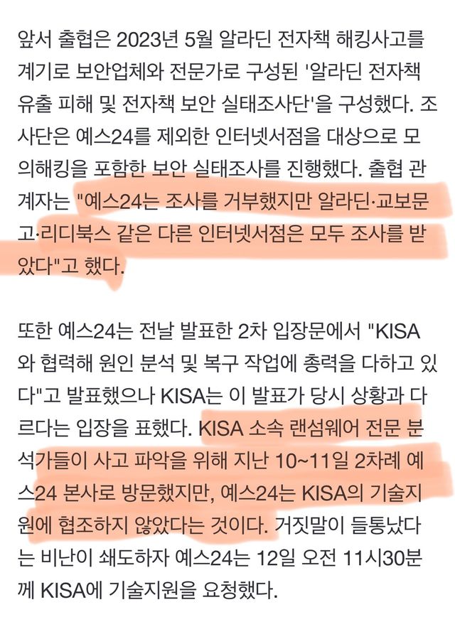 또, 이번 해킹 때도 Yes24는 kisa와 협력하여 복구 작업 중이라고 했지만 그마저도 구라였음. ㄷㄷ