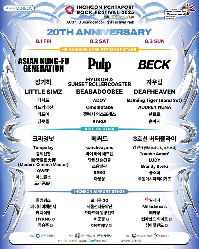 인천 송도달빛축제공원이 다시 음악 성지로 변모한다. 다음달 1일부터 3일까지 3일간 송도달빛축제공원에서 '2025 인천펜타포트 락 페스티벌 with KB국민카드 스타샵'이 펼쳐진다. 국내외 정상급 아티스트 58팀이 무대에 서는 이번 페스티벌은 브릿팝의 전설부터 K-록의 거장들, 그리고 떠오르는 신예 아티스트들까지 아우르는 완벽한 라인업으로 음악 팬들의 뜨거운 관심을 모으고 있다. 인천시가 주최하고 인천관광공사와 경기일보가 공동주관한다.