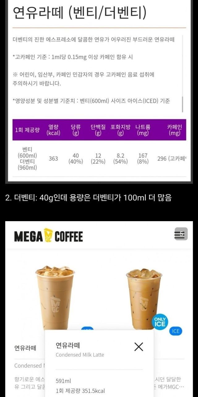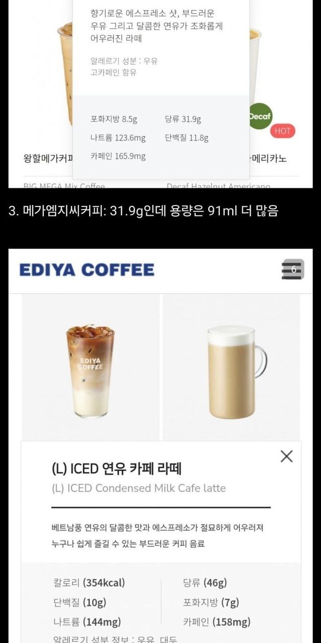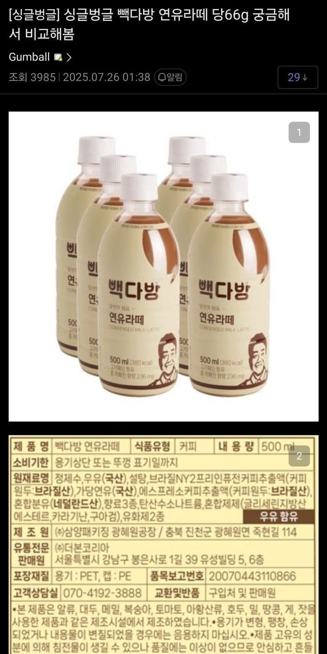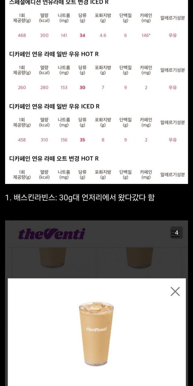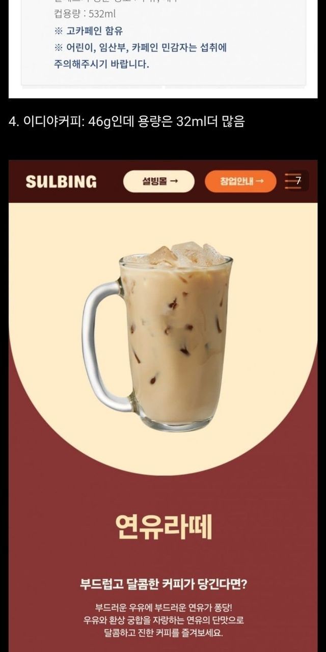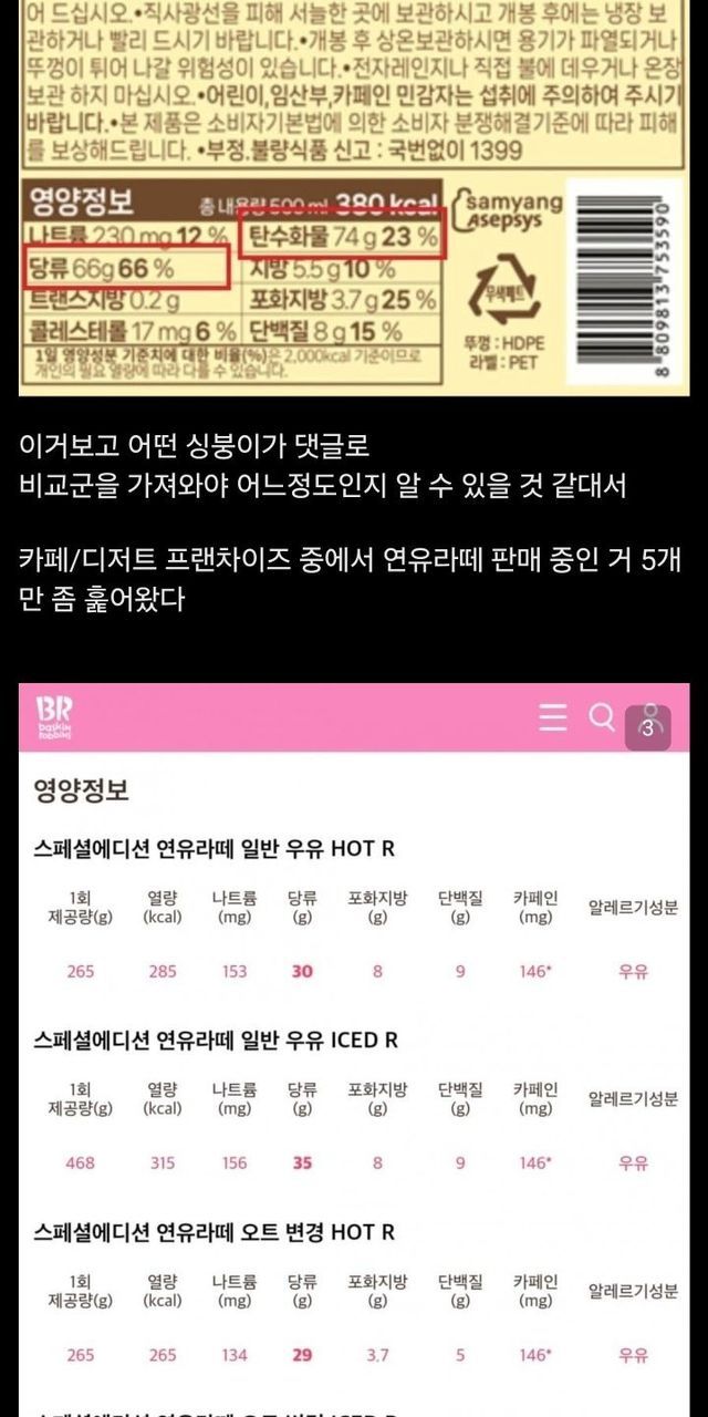 빽다방 연유라떼 당 비교해 본 디씨인