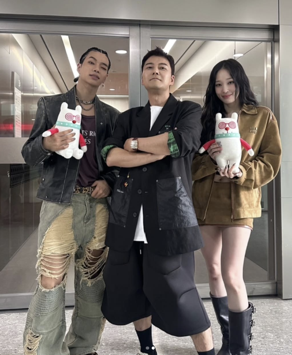 공개된 사진 속 전현무는 올데이 프로젝트 멤버 타잔, 애니와 만나 기념 사진을 찍었다.타잔과 애니는 MBC 예능 ‘전지적 참견 시점’ 인형을 들고 있는 가운데 전현무는 도발적인 눈빛과 당당한 포즈로 눈길을 끌었다.